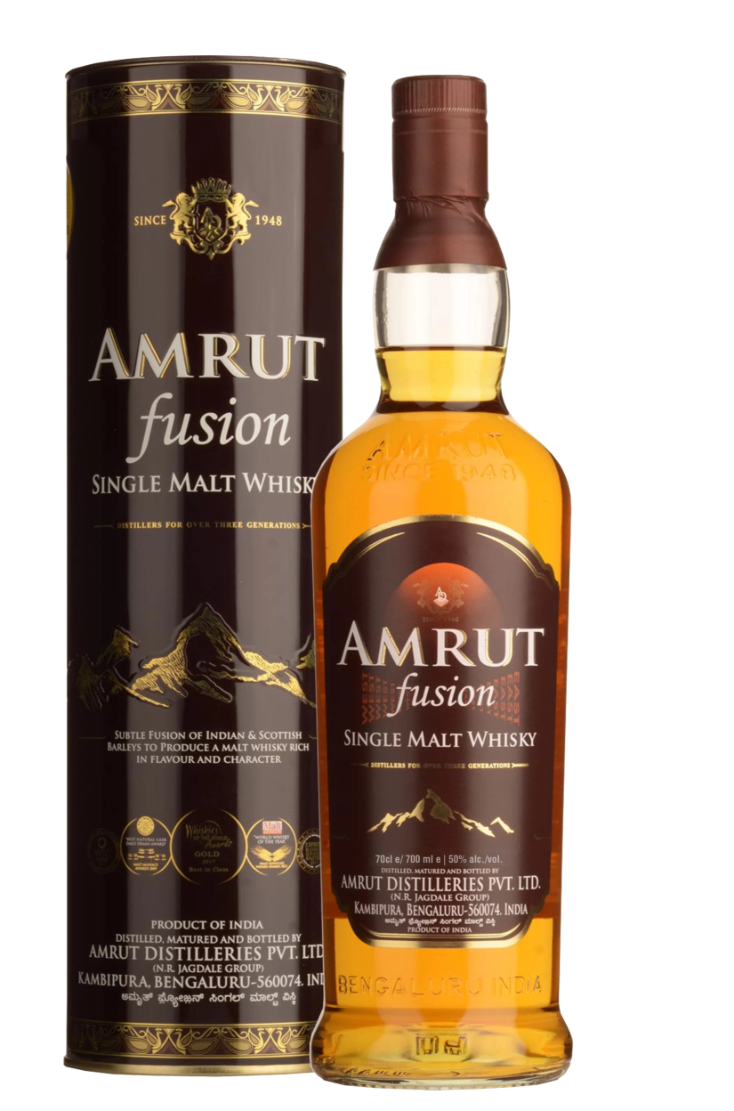 Amrut Fusion stands as a testament to meticulous craftsmanship, expertly blending Single Malt Whiskies sourced from barley grown in two distinct regions. While the majority hails from the Himalayas, a portion comes from peated barley in Scotland. Distilled and matured separately in both old and new American Oak Barrels at our Bangalore distillery, nestled 3000 ft. above sea level, these carefully aged malt whiskies are harmoniously married. This fusion represents a convergence of Eastern and Western influences, embodying spiritual ideals of unity, peace, and prosperity. It reflects the enduring legacy of our family-owned distillery, spanning over three generations. Amrut Fusion's creation transcends geographical boundaries, offering a taste of tradition and innovation in every sip, encapsulating the essence of fine Indian craftsmanship.