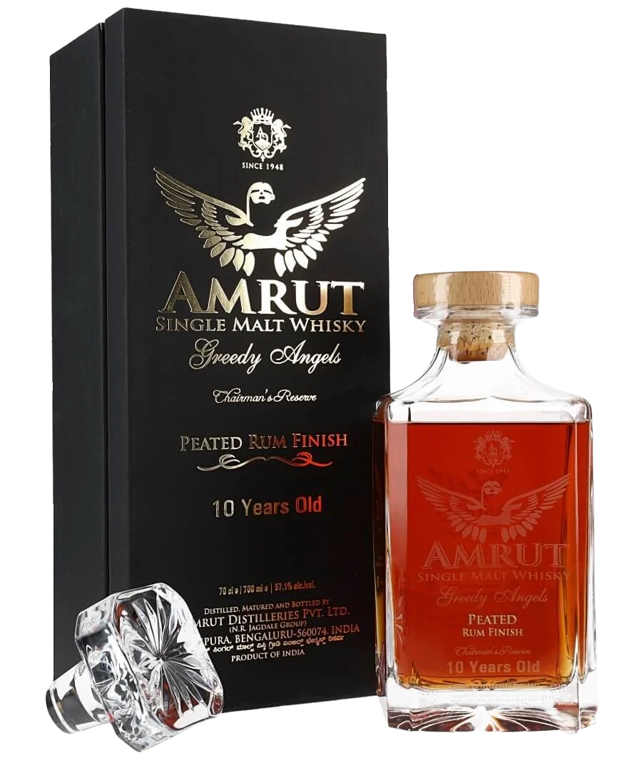 Amrut Single Malt Whisky Greedy Angels Peated Rum Finish Chairman’s Reserve 10 Years Old – 57.1%