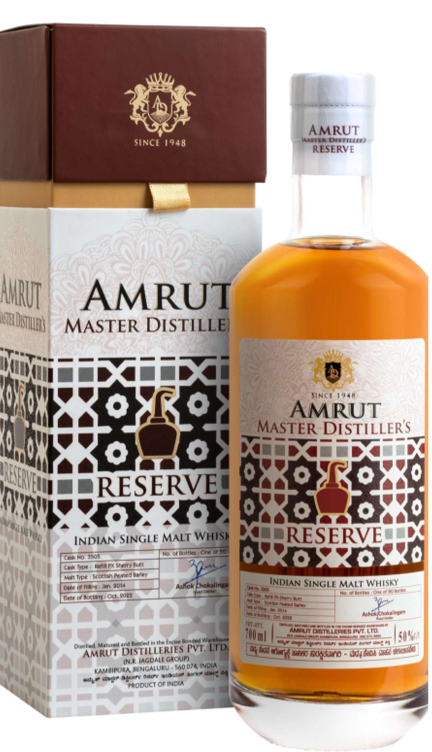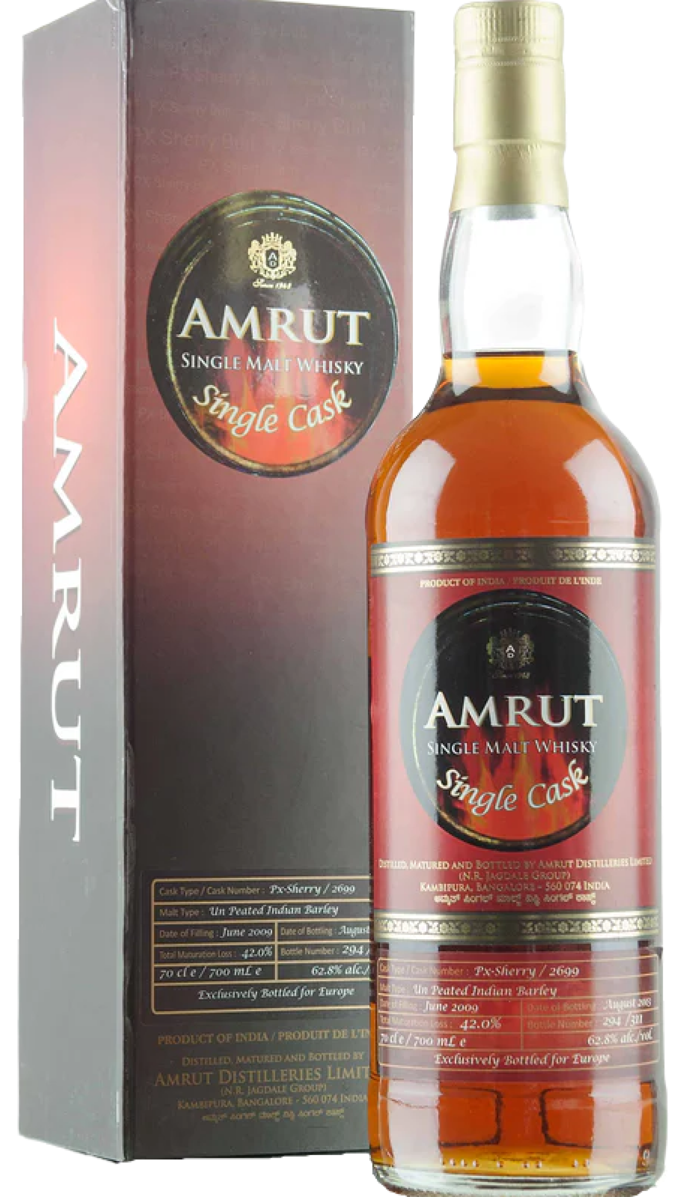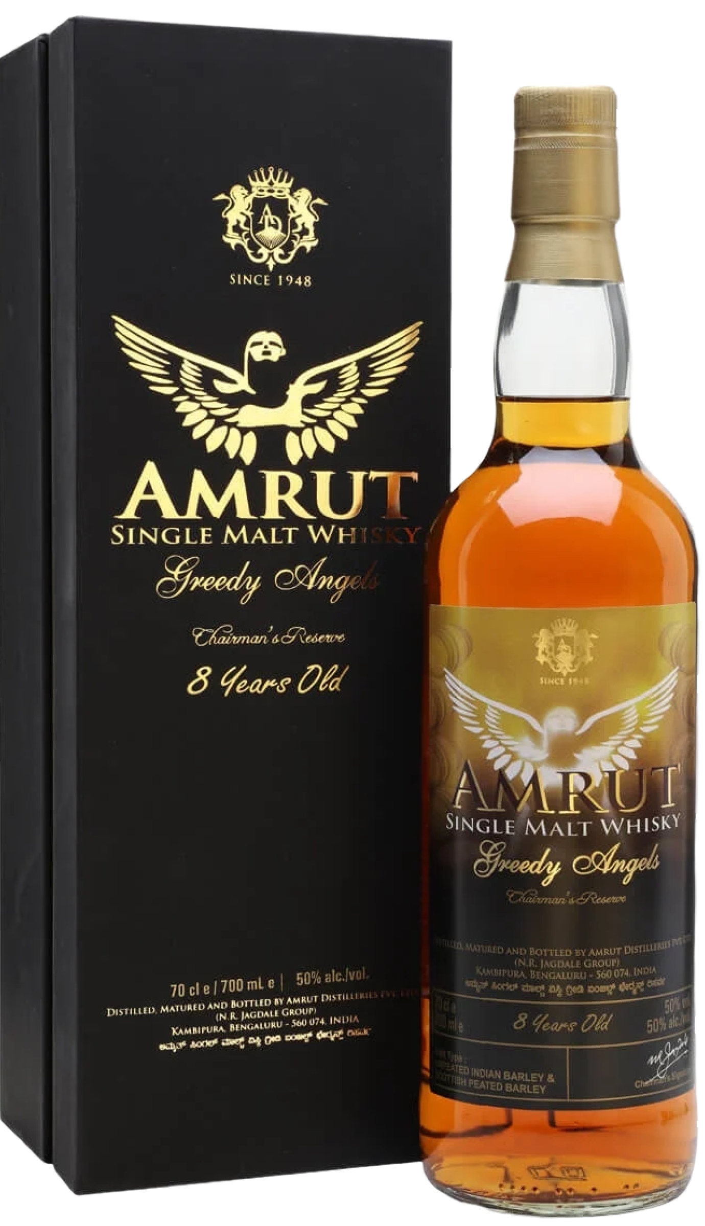 Amrut Single Malt Whisky Greedy Angels Peated Sherry Finish Chairman’s Reserve 10 Years Old – 60%