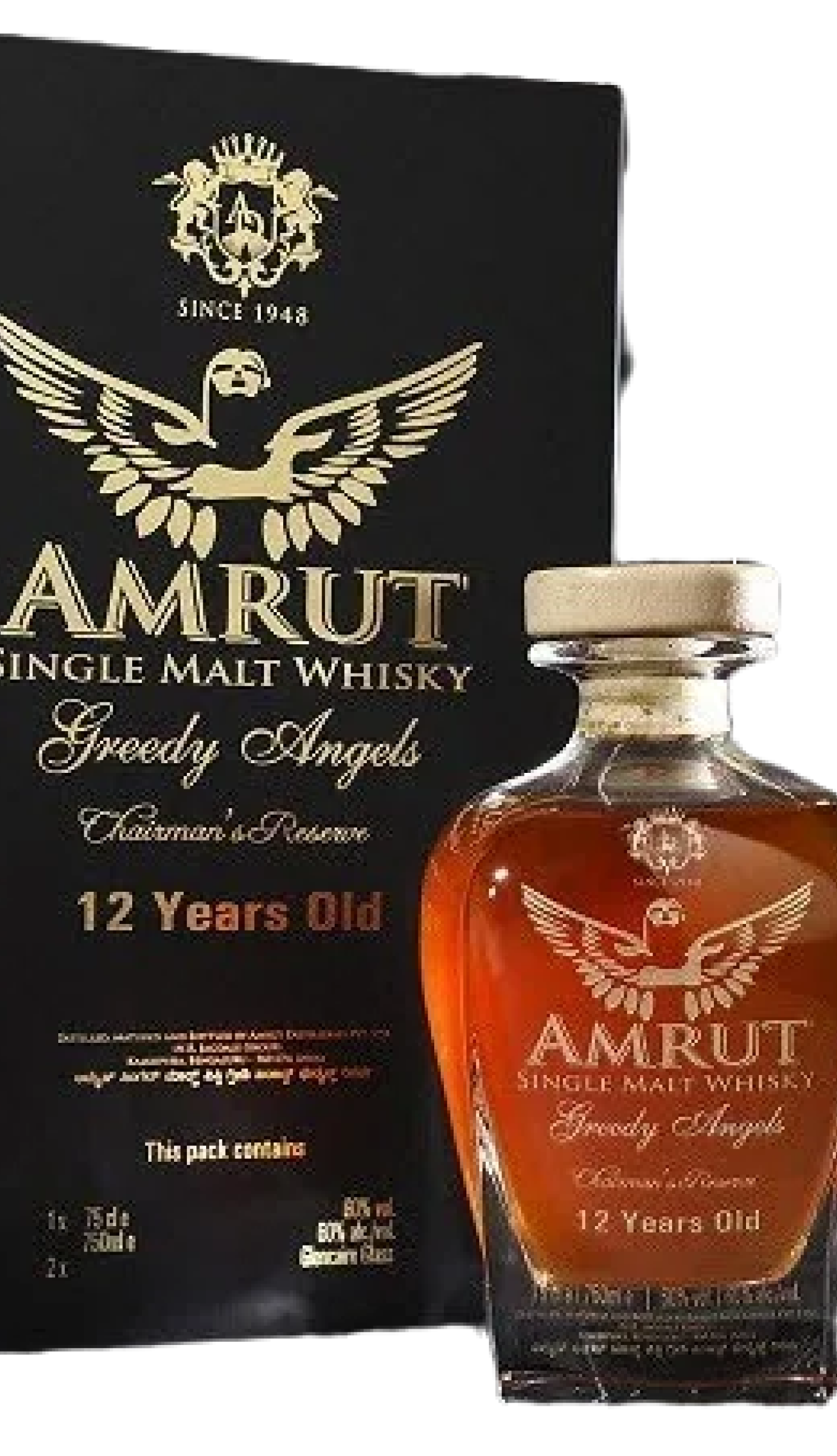 Amrut Single Malt Whisky Greedy Angels Ex-Bourbon Finish Chairman’s Reserve 12 Years Old – 60%